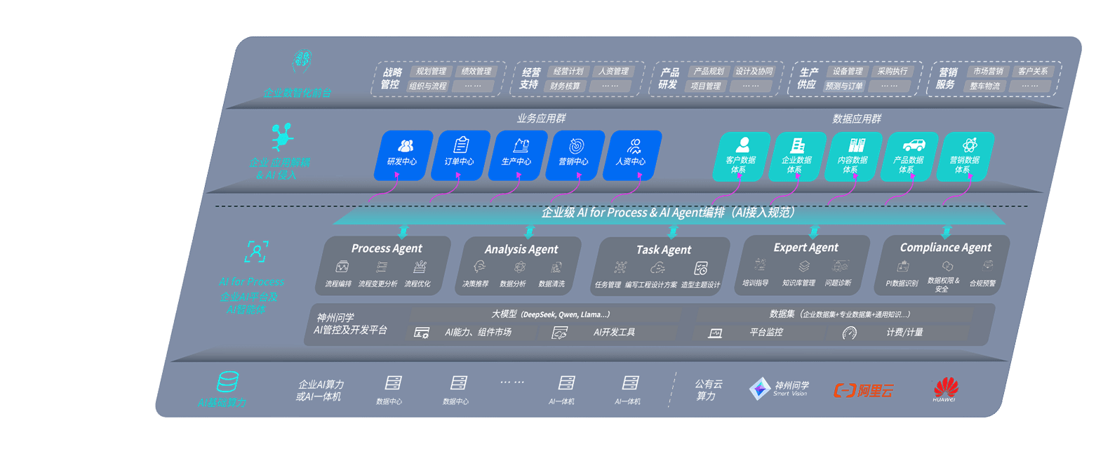 端到端的一站式AI工作空间深度融合了从企业战略规划到日常经营的全流程业务板块,,,定向解决车企内部领域多、、部门多、、、、链条长、、场景碎片化等难题,,,支持车企快速构建以AI为核心的生产力写作体系,,实现任务执行与AI能力的无缝集成与交互